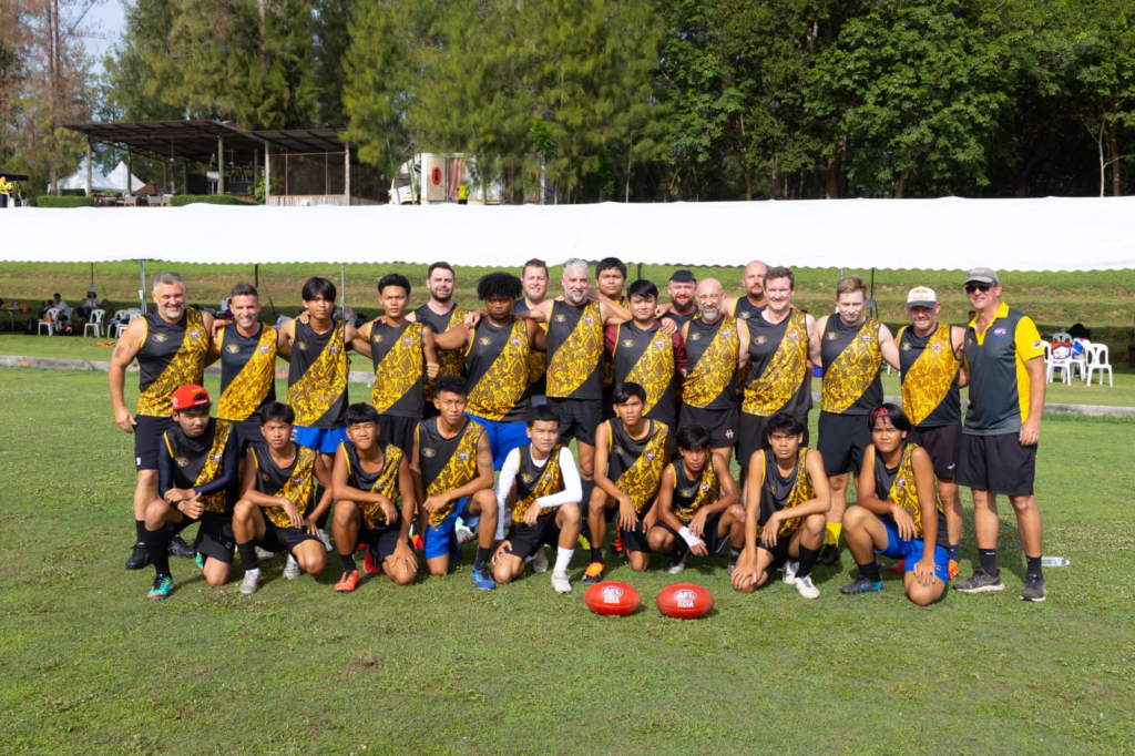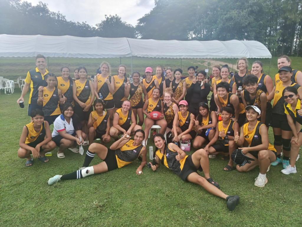 The development of the women’s game in Thailand was highlighted by the Tigers entering both Division One and Division Two teams this year. In Division Two Bie led the competition in tackles with eighteen, followed closely by Paeng who went on to win an All Asian jumper. Jess and Kay provided stout defense down back and looked a class above Division Two. Gen was in great form, kicking two goals from two kicks and Emma was throwing people around and taking on opponents with great confidence. Lilly really impressed with her tackling and strength around the contest and Madison and Aoey were strong down back. Fah and Toon showed real improvement and have been tipped by coach Pez as players to watch out for in 2026.